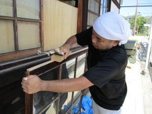 島本町の登録有形文化財、歴史文化資料館の建具の改修工事を行いました。