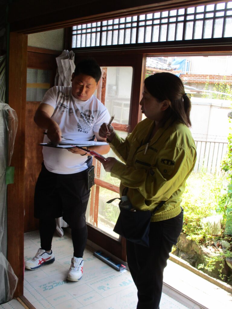 古民家総合調査を行いました。慣れていない会員の方へ鑑定のレクチャーをしている様子。