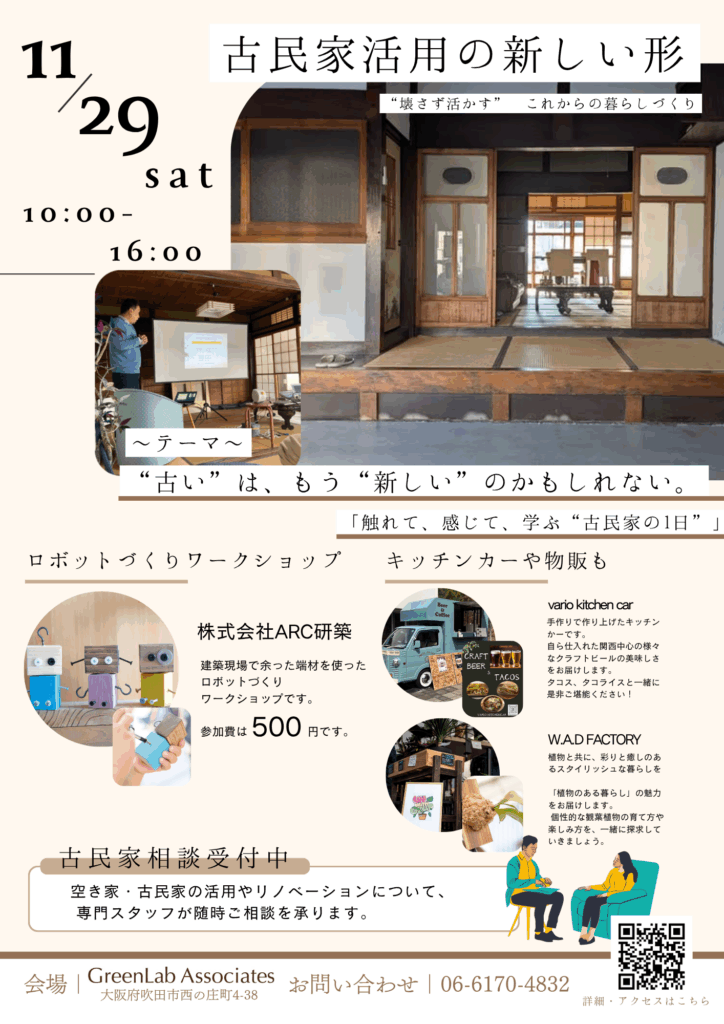 「古民家活用の新しい形」というタイトルのイベントが開催されます。
